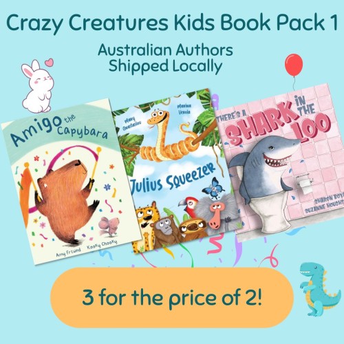 Wild, weird, and wonderful! This trio of creature-filled stories is bursting with unexpected characters and hilarious twists, perfect for kids who love books about animals and creatures with personality. Included Titles: Amigo the Capybara A noisy capybara tries to impress his quiet animal friends… but maybe listening is more powerful than shouting. A gentle story about empathy and self-awareness. There’s a Shark in the Loo Chaos strikes when a shark turns up in the bathroom! A hilarious read-aloud with catchy rhymes and endearing illustrations. Julius Squeezer A friendly jungle snake tries to find his place among the animals — even if his hugs are a little… tight. Sweet and silly with a big heart.- Stories full of humour, heart, and surprise