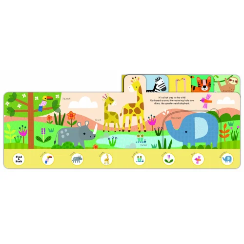 Find and Seek: Wild Explorers is an exciting search-and-find board book that takes little readers on a journey through the wild! Every page packed full of animals, footprints, and nature-themed surprises! Kids will love pointing out and naming all the hidden items.