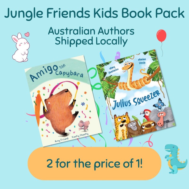 Celebrate jungle friendships with two cuddly characters and their wild adventures. Ideal for kids who love animals, humour, and big personalities. Included Titles: Amigo the Capybara A noisy capybara learns that listening and kindness matter most. A sweet tale of friendship, self-discovery, and community. Julius Squeezer A jungle snake who loves to hug — a bit too hard! Funny and gentle, this book helps kids learn about social awareness and personal space.- Teaches friendship and emotional boundaries