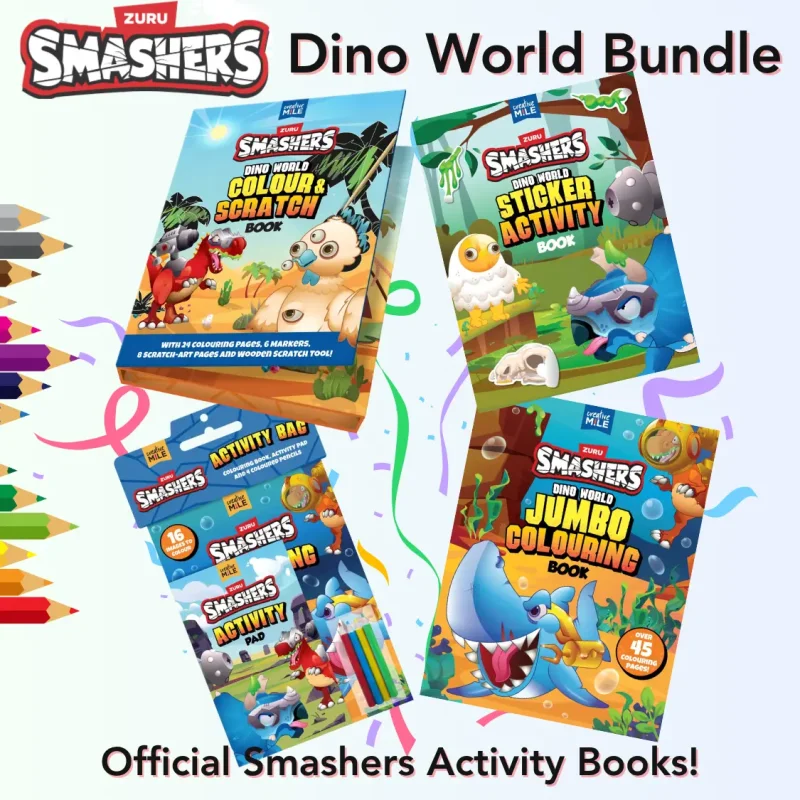 • Smashers Dino World Jumbo Colouring Book – Oversized colouring pages filled with wild characters and erupting dino disasters